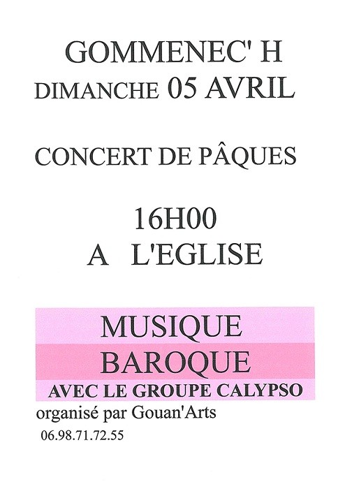 Organisé par Gouan’Arts, avec le groupe Calypso, concert de musique baroque. A l’église.