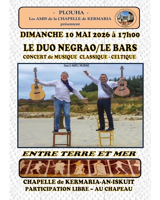 Organisé par l’association Les amis de la chapelle de Kermaria, concert de musique classique celtique avec le duo Negrao/Le Bars. Participation libre.