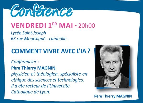 Dans le cadre du Festival Notre-Dame, la paroisse organise la conférence « Comment vivre avec l’IA » par Thierry Magnin, physicien et théologien, spécialiste en éthique des sciences et technologies.