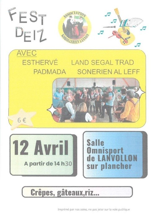 Organisé par l’association Korollerien Lannon, avec Esthervé, Padmada, Land Segal Trad et Sonorien Al Leff. A la salle Omnisport. Petite restauration sur place. 6€.