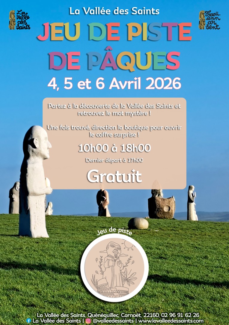 Partez à la découverte de la Vallée des Saints et retrouvez le mot mystère ! Une fois trouvé, direction la boutique pour ouvrir le coffre surprise ! Dernier départ à 17h.