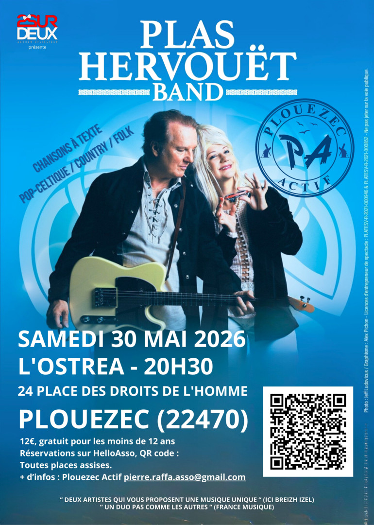 Le duo Plas Hervouët Band propose une musique unique mêlant les genres celtique, blues country, pop, folk, et chanson française. Ce duo est une rencontre musicale entre deux talents : Rachelle Plas (harmoniciste et chanteuse) et Philippe Hervouët (guitariste et chanteur). Leur entente, leur complémentarité et leur créativité débridée les ont propulsés sur les scènes nationales et internationales.