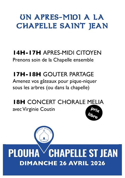 Un après-midi pour prendre soin de la chapelle avec l’association, goûter partage à 17h puis concert à 18h de la Chorale Melia avec Virgnie Coutin. Libre participation.