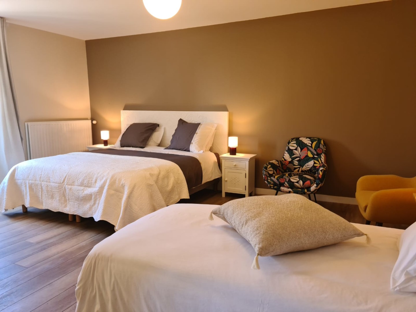 Trois chambres spacieuses et confortables vous sont proposées. Elles sont toutes équipées de lits king size (ou de lits jumeaux), d’un bureau, d’un portant, d’une salle de douche et d’un WC séparé privatifs